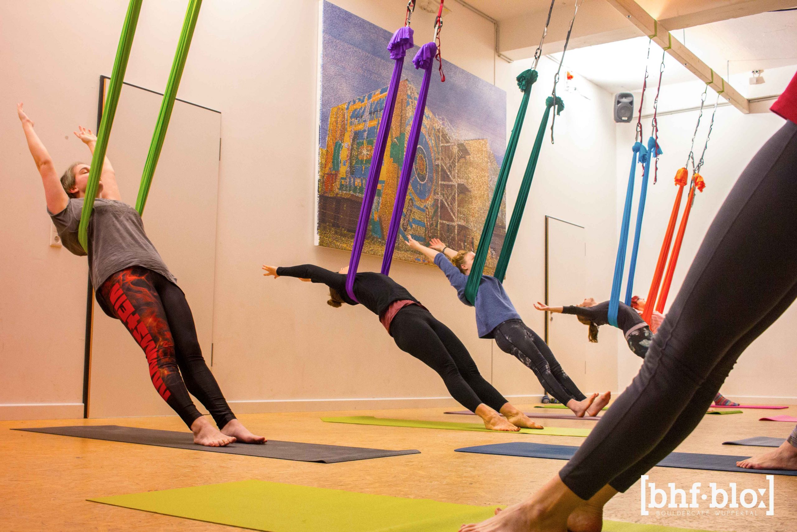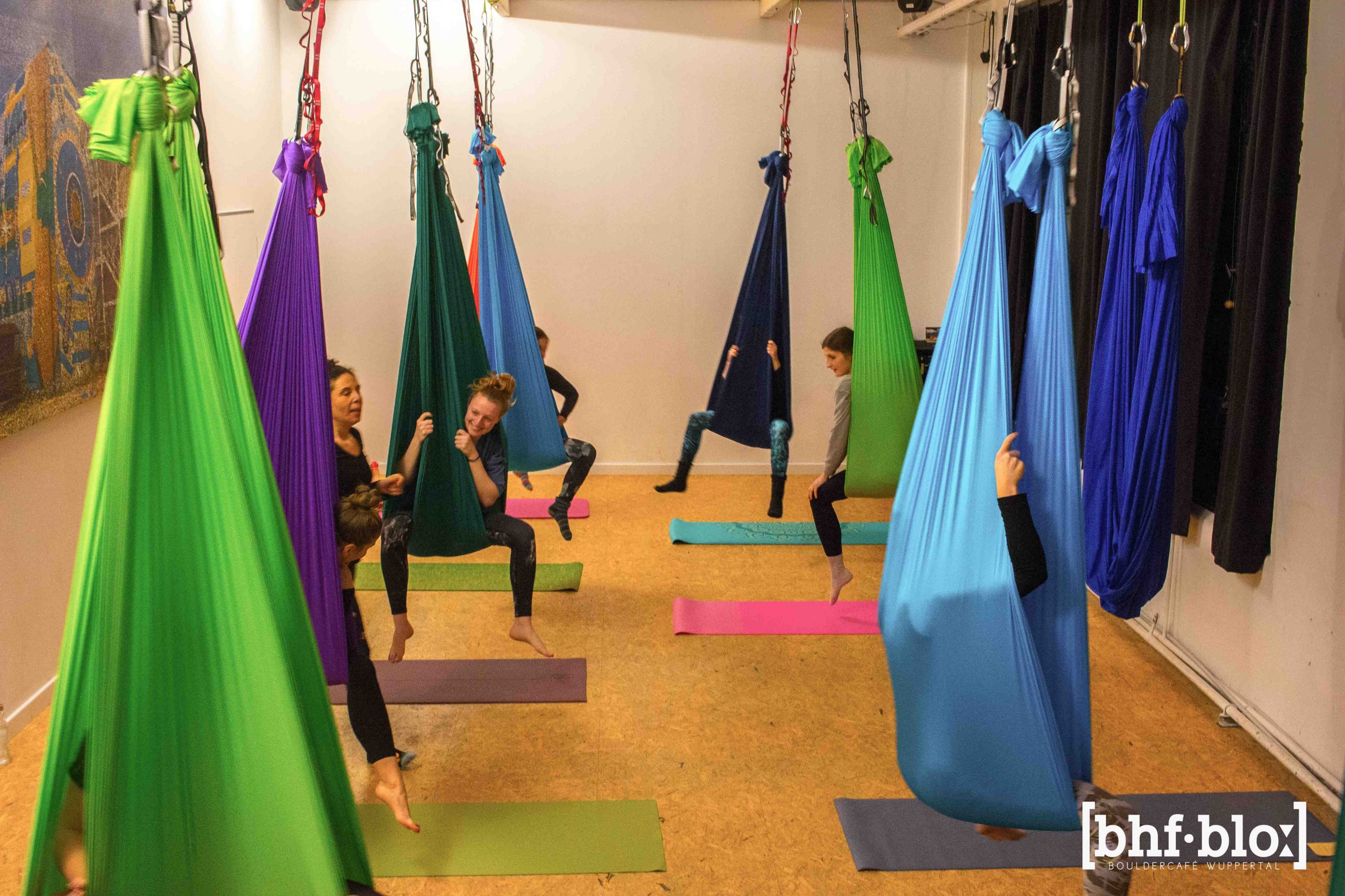 So könnt Ihr Euch bei den Asanas mal geborgen fühlen, mal wie ein Kind in einer Schaukel schwingen oder anspruchsvolle Varianten (wie die Umkehrposition) mit etwas Akrobatik erleben.