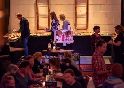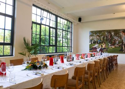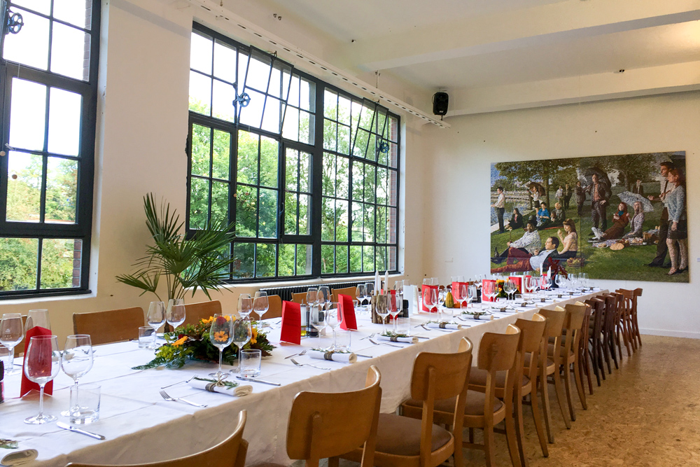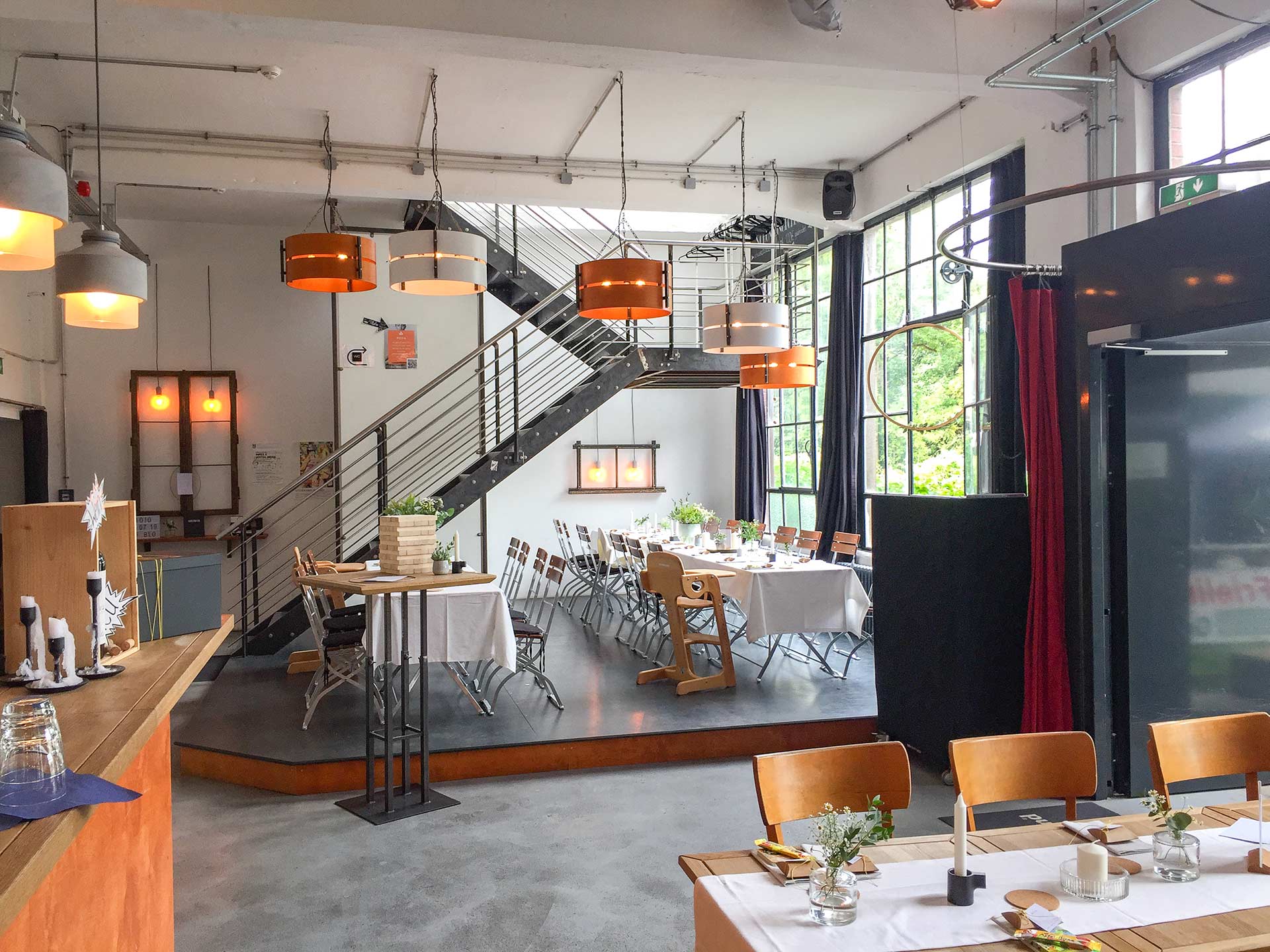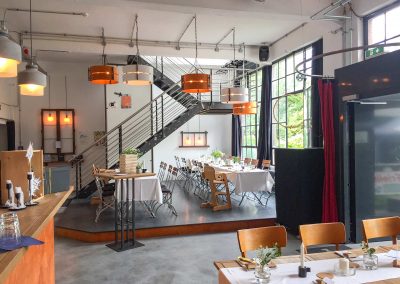 Ihr möchtet lieber in kleinerer Runde feiern? Dann ist unser Veranstaltungsraum die richtige Wahl! In der oberen Etage gelegen und mit circa 70 m² Fläche ausgestattet, bietet er Euch Platz für eine Gesellschaft von bis zu 60 Personen. Die hohen, lichtspendenden Fenster im Industrielook zeigen zur Wuppertaler Nordbahntrasse und geben dem Raum eine offene und freundliche Atmosphäre.