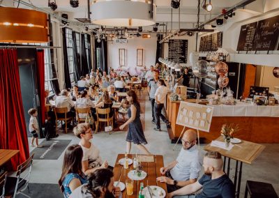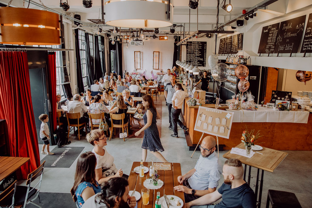 Das Herzstück unserer Anlage bildet das Café mit seinem stilvollen Interieur, das Euch mit Industrie-Chic und Charme sowie reichlich Platz empfängt. Auf über 150 m² Gastfläche könnt Ihr mit einer Gesellschaft von bis zu 150 Personen zusammenkommen, um in großer Runde zu feiern. Egal ob einzelne Carree-Bestuhlung oder lange Festtafeln, aufwendige oder bodenständige Dekoration: unser Café ist ein wahrer Verwandlungskünstler und kann abends dank hochwertiger Licht- und Soundtechnik in Windeseile in Partymodus versetzt werden.