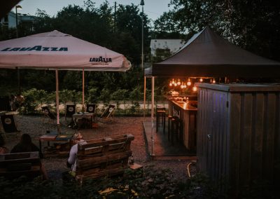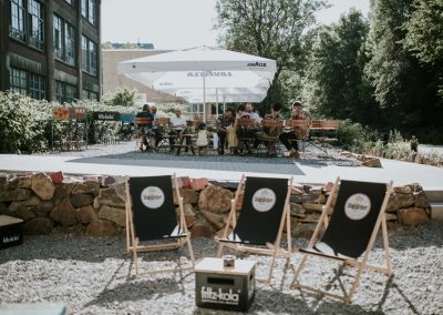 Unsere großzügige Terrasse mit famosem Foodcontainer, lässigem Bierwagen und feinsandiger Beachlounge bietet Euch ausreichend Platz für eine ausgelassene Sommerparty mit bis zu 150 Gästen. Hier könnt Ihr das inspirierende Flair der aufstrebenden Nordstadt unmittelbar spüren und unter Schatten spendenden Sonnenschirmen an unseren Tischen verweilen.