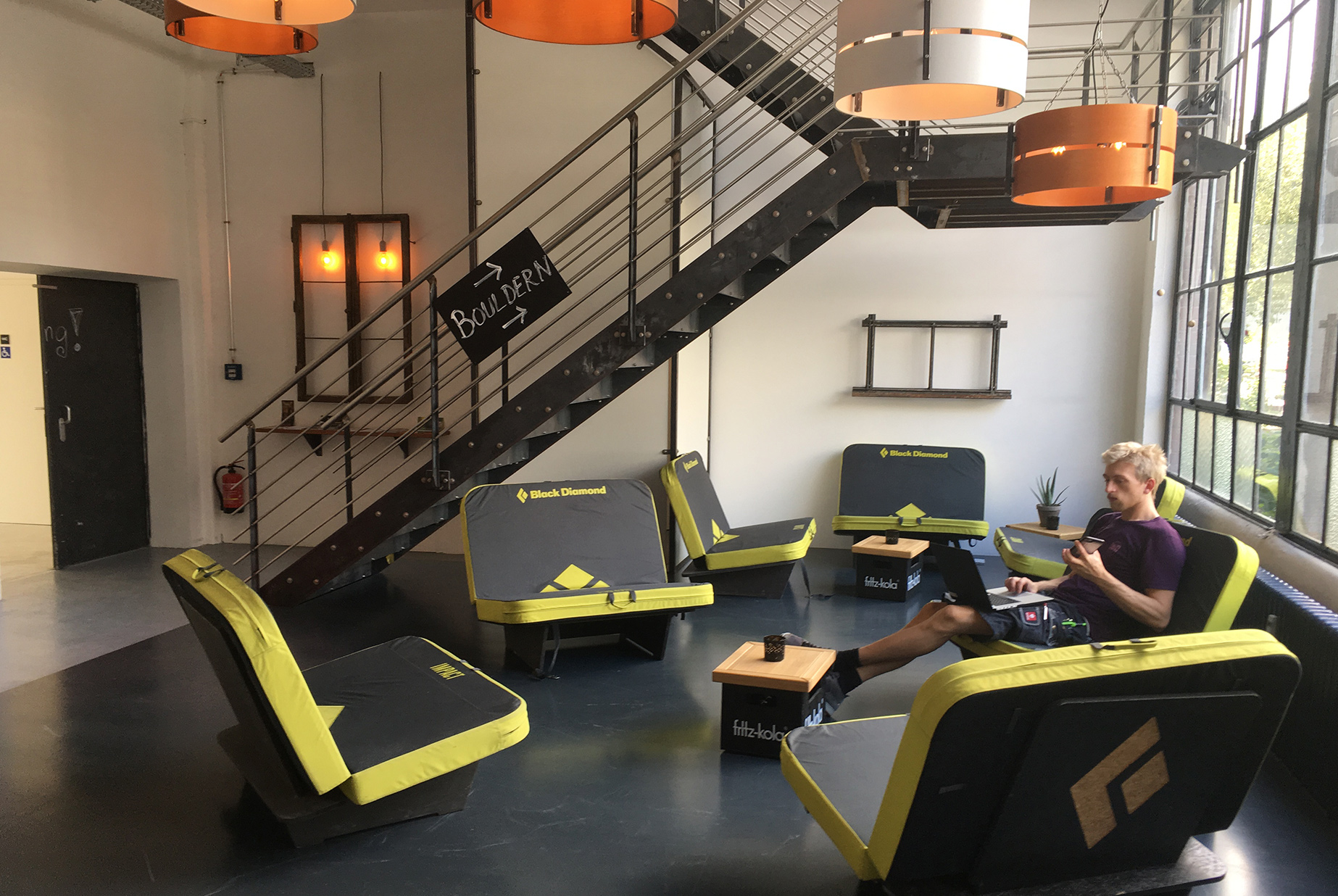 Der Bahnhof Blo ist ein Ort der Begegnung – euer verlängertes Wohnzimmer. Hier können spannende Geschichten über das Klettern im berühmten Bouldergebiet »Fontainebleau« (Blo), über das Reisen oder sonstige Abenteuer erzählt werden. Ein Treffpunkt für Boulderer, Besucher der Nordbahntrasse und die Nachbarn im Quartier.